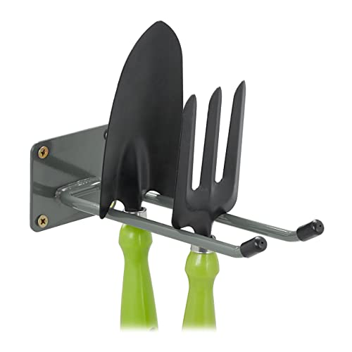 Relaxdays Support Mural, 24 cm de Long, Double Crochet pour Mur, Porte-Outils Garage, Atelier & Cave, Acier, Anthracite