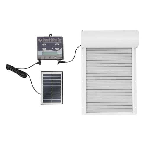 C-Juzarl Porte de poulailler automatique solaire avec télécommande, porte de poulailler électrique, porte de poulailler automatique, avec minuterie et capteur de lumière, blanc