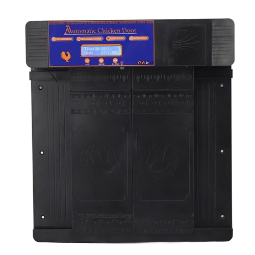 Porte de poulailler automatique, solaire et alimentation secteur 24,5 x 37 cm, avec télécommande, écran LCD, étanche IP67, minuterie et capteur de lumière, montage mural, pour poules et volailles