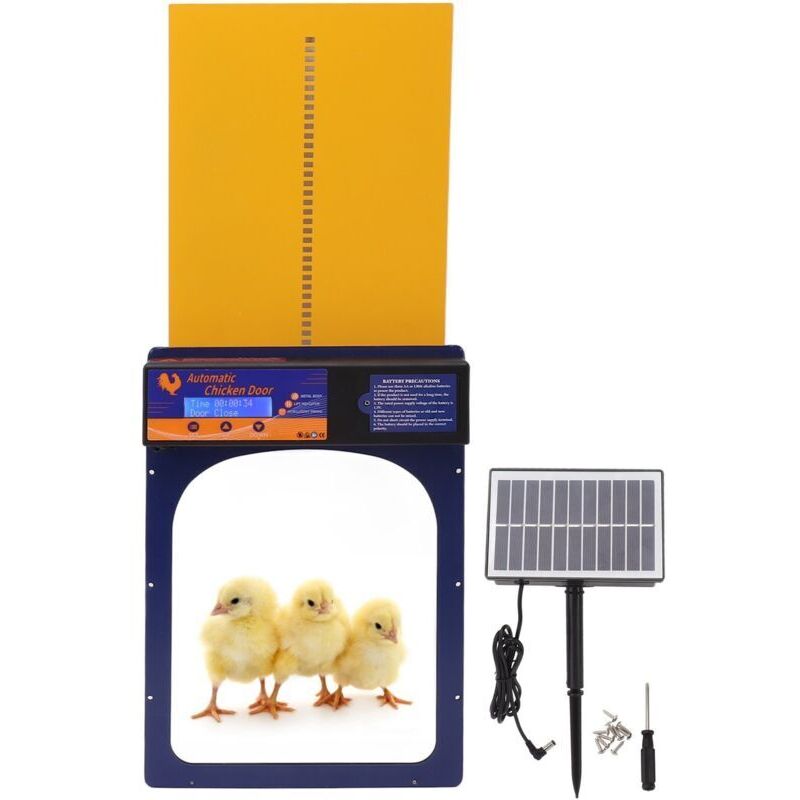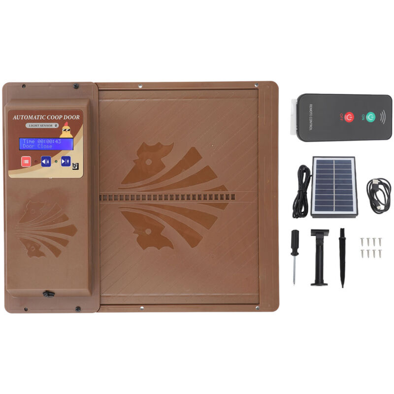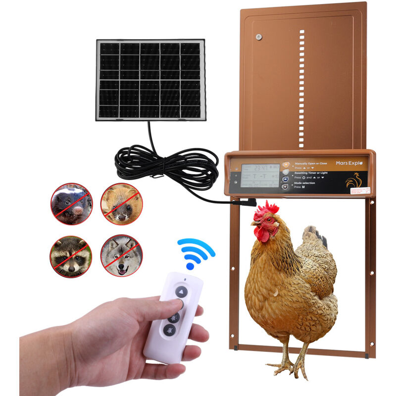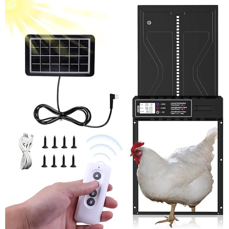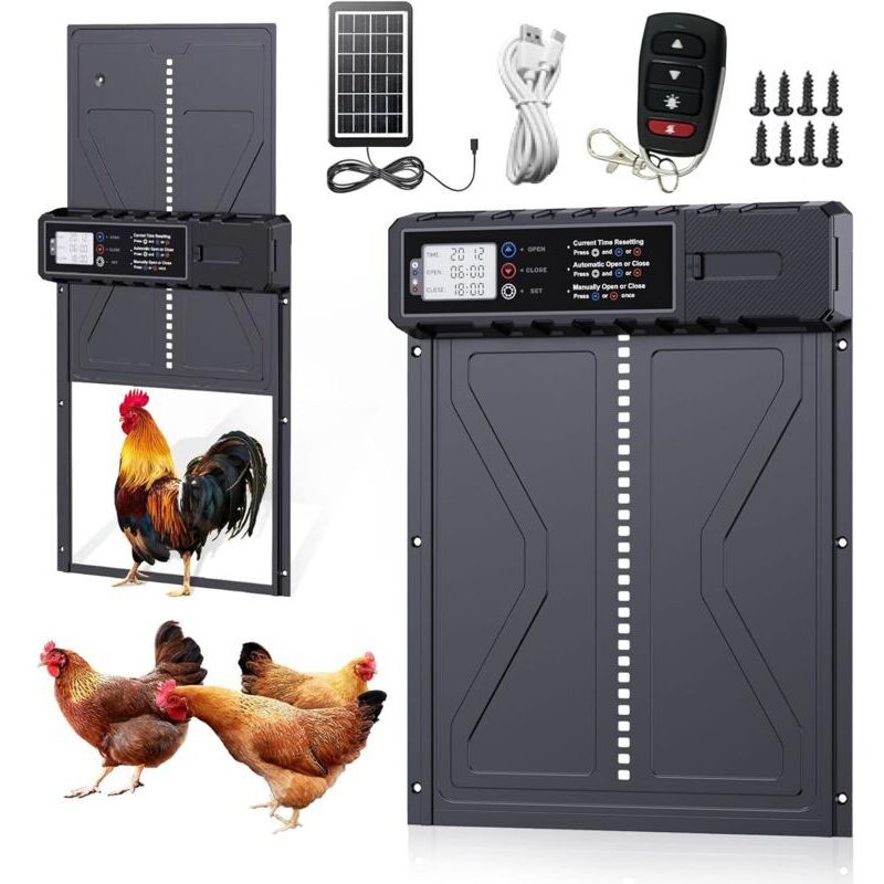 Porte automatique solaire pour poulailler avec capteur de lumière et télécommande – LED, minuterie intégrée