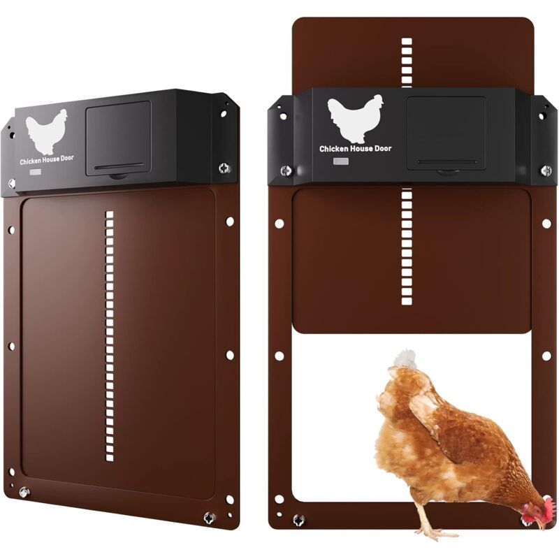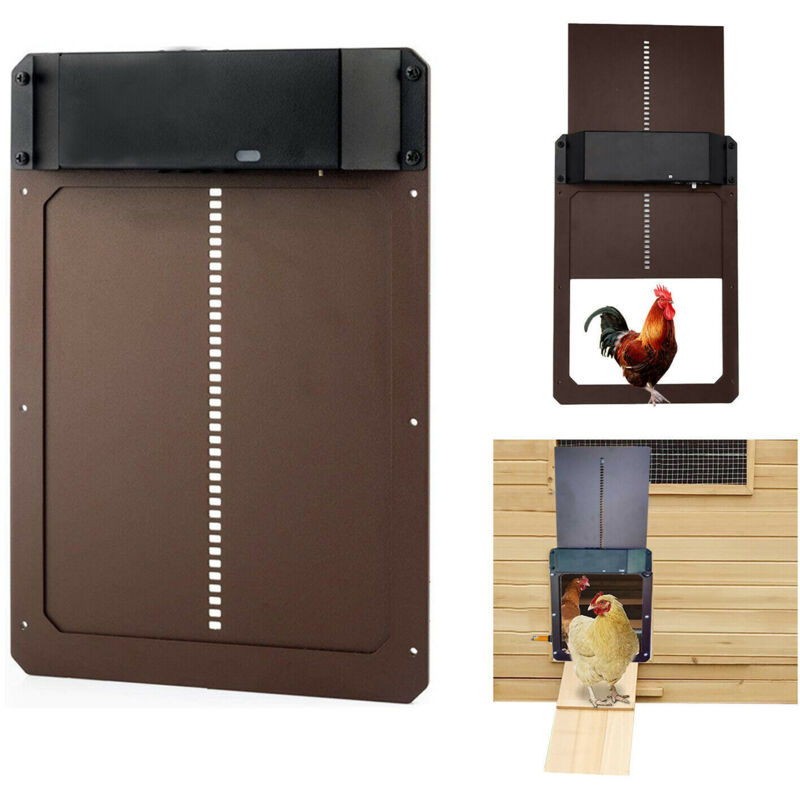 Porte de poulailler Automatique, Alimenté par pile, Détection de la lumière, Porte Automatique poulailler, Trappe poulailler, Brun One Size -INHHUB