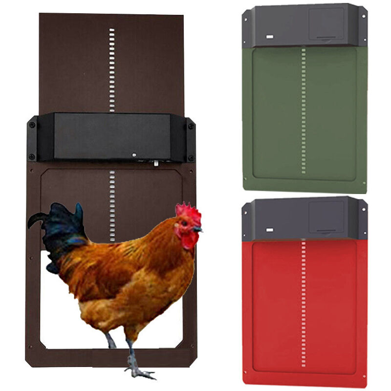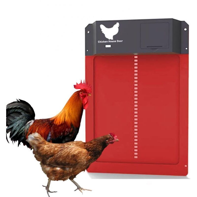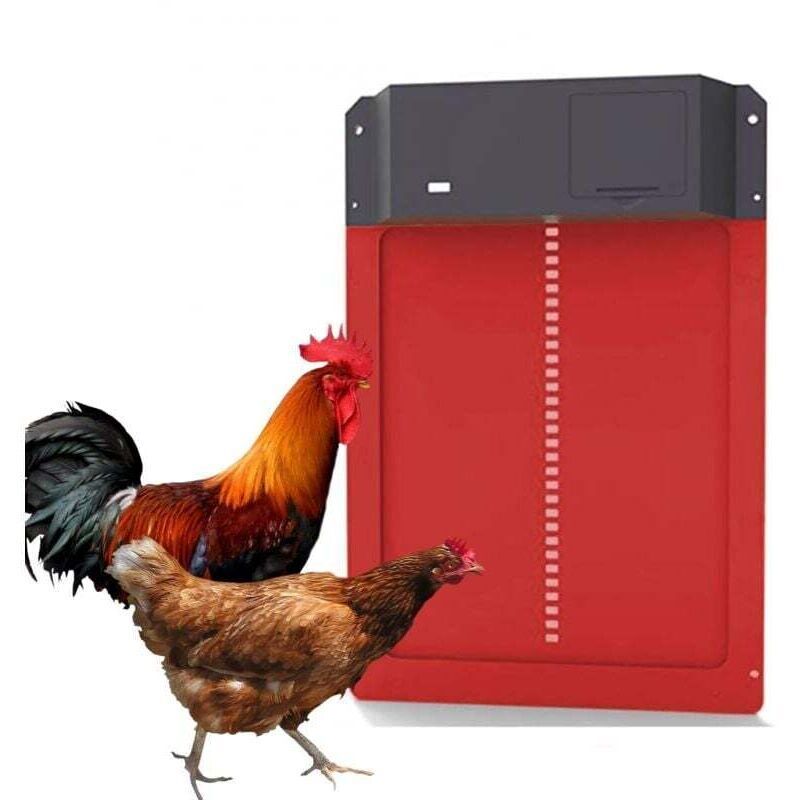 Porte automatique pour poulailler, porte en plastique léger, détection de lumière, ouverture différée le soir et le matin, Rouge