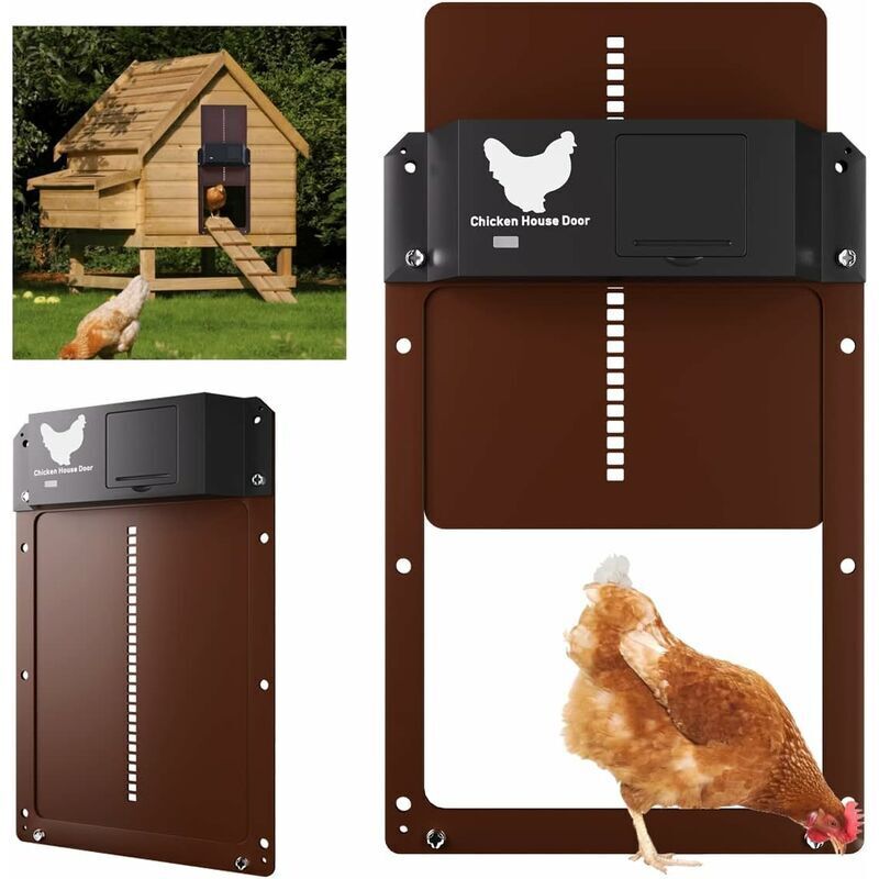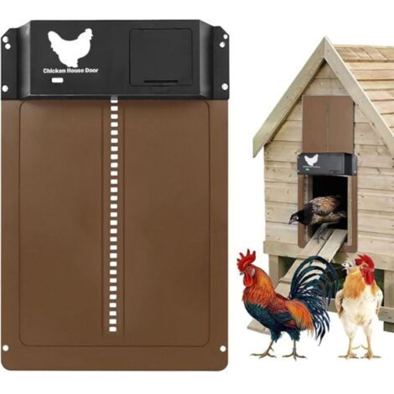 Porte de poulailler automatique avec capteur de lumière - Poulailler entièrement étanche avec porte à induction - Porte de poulailler (marron)