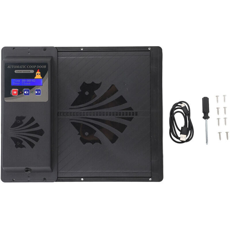 Ouvre-porte automatique pour poulailler USB à ouverture horizontale avec minuterie (noir)