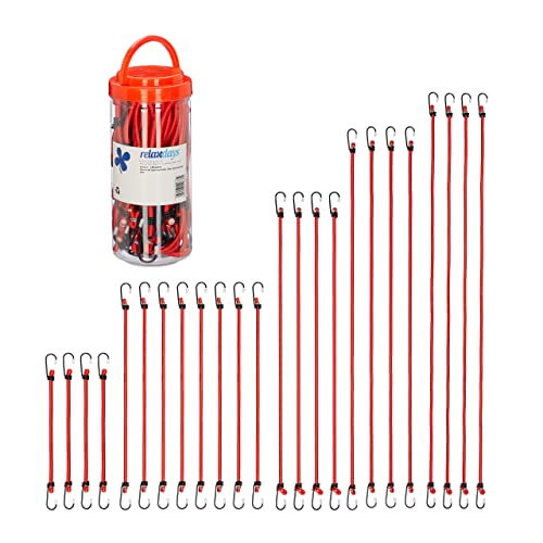 Relaxdays Tendeurs avec Crochets, Lot de 24, Sangles Porte-Bagages sur vélos, 5 Tailles, Attaches universelles, Rouge