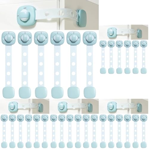 Vinabo Bloc Porte Securite Bebe, 6 pcs Bloc Placard Bebe Réglables, Securite Placard Enfant pour Tiroirs, Placards, Réfrigérateurs, Serrures de Sécurité pour Enfants, Blue
