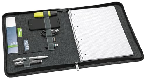 LHiDS Portfolio A4, Porte Document, Dossier de Conférencier avec Papier/Accessoires Organiseur Magnétique, Porte Bloc Magnetique Range Documents pour Conférence, École, Entrevue & Voyage, Gris