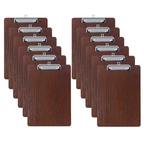 GUOKOFF 12 Pièces En Bois Porte-bloc A4 avec Pince, Clipboard A4, Porte Bloc Avec Pince, Planchettes à Pince pour Papier d'écriture Memo des Dossiers, Porte Document A4 Avec Clip