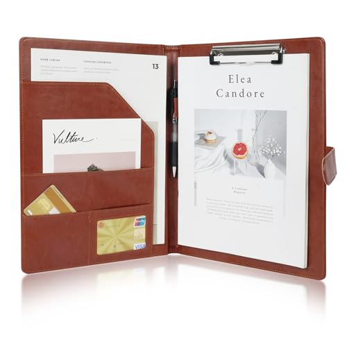 OFFCUP Porte Document A4, Portfolio en Cuir PU A4, Conférencier avec Fermoir Magnétique et Pochettes, Range Documents Porte Bloc avec Pince, Porte Bloc-notes pour Bureau Agenda Conférence (Brun)