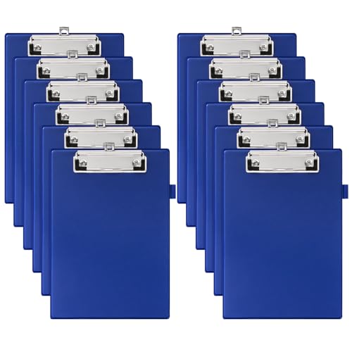 Srvnpioy Lot de 12 Porte-bloc DIN A5, Tableau d'écriture A5, avec Boucle pour Stylo et Boucle de Suspension Rétractable (Bleu)