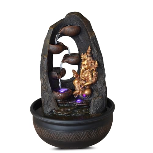 Fontaine d’Intérieur Bouddha Ganesh avec Lumière LED Colorée – Décoration Feng Shui Zen - Fontaine de Table Bureau Chambre Salon - Circuit fermé – Cadeau Porte-Bonheur – H 40cm – Mystic Zen’Light