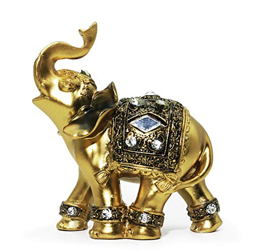 Mose Cafolo ~ Figurine éléphant doré de 9,7 cm (H) pour la Bonne Richesse Feng Shui Porte-Bonheur pour la décoration de la Maison