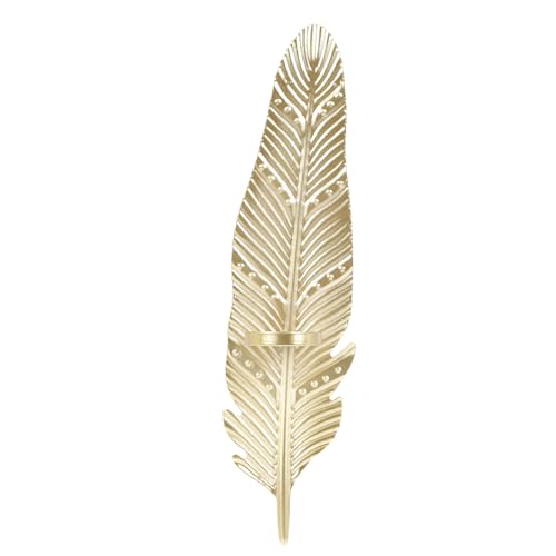 Dekoleidenschaft - Porte-bougie mural en plume en métal, or, 99 cm de haut, décoration murale, ornement mural, porte-décoration