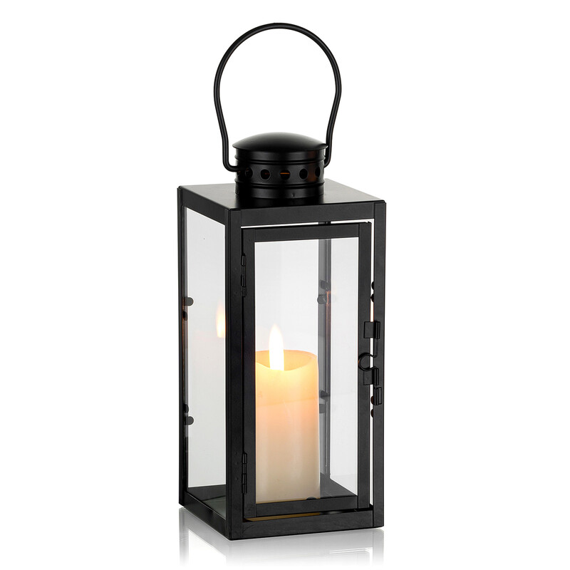 Lanternes Décoratives Noires d’Intérieur : Lanterne Suspendue de Mariage 9,5 pouces avec Verre Transparent, Porte-Bougie Style Maison de Campagne pour Salon, Véranda, Table, Manteau de Cheminée et Décoration Murale de Jardin