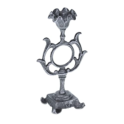 Relaxdays Chandelier Antique, candélabre pour chandelle Ø 4 cm, Porte-Bougie Vintage en Fonte, 28,5 cm de Haut, argenté