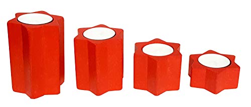 Hess Holzspielzeug 40043 - Porte-Bougie en Forme d'étoile, Jeu de 4, en Bois, Rouge, décoration pour Les Occasions spéciales des Monts Métallifères