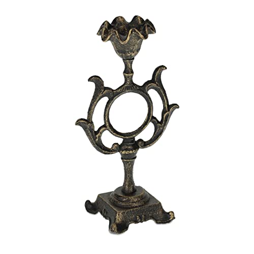 Relaxdays Chandelier Antique, candélabre pour chandelle Ø 4 cm, Porte-Bougie Vintage en Fonte, 28,5 cm de Haut, Bronze