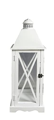 Lanterne porte bougie en bois blanc antique et verre shabby différentes tailles Media 910/16 blanc