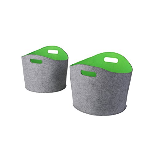 Kamino-Flam Ensemble de 2 Paniers de Rangement en Aspect Feutre, 2 Porte-Bûches Ovales avec Poignées en 2 Tailles de Capacité d’env. 16 et 20 L, Gris/Rouge