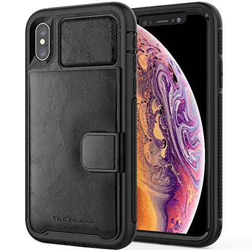 TECHGEAR® Etui Portefeuille Robuste pour Apple iPhone XS Max, Coque de Protection Anti-Choc 360 avec Porte-Carte et Support - Noir (pour iPhone XS Max 6.5")
