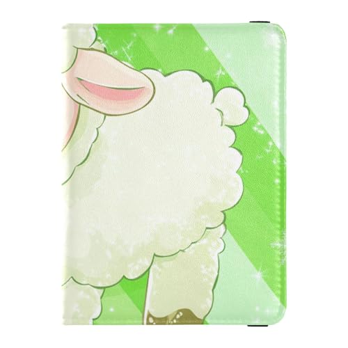 Portefeuille pour passeport et carte de vaccin en cuir de mouton vert mignon dessin animé portefeuille porte-badge carte de vaccin carte de vaccin portefeuille portefeuille ultra fin, Mouton vert