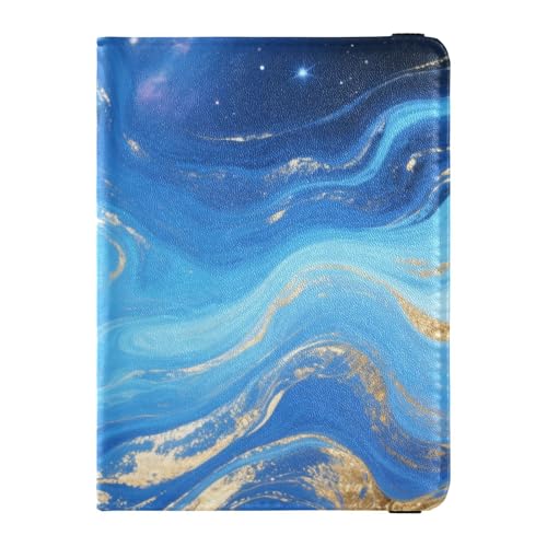 Porte-passeport imperméable en cuir texturé bleu et doré pour voyage pour voyage, porte-carte de vaccin, porte-badge, carte d'identité, portefeuille léger pour homme