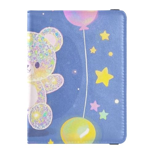 Porte-passeport décoratif en cuir avec motif d'ours à paillettes pour passeport de voyage, porte-badge, carte de vaccin, portefeuille léger, Ours à paillettes mignon, 1 size
