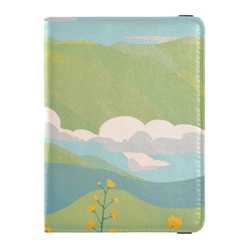 Portefeuille de voyage décoratif en cuir avec marguerites jaunes et herbe verte pour femme, porte-passeport, porte-badge, carte d'identité, vaccin, portefeuille léger, Marguerites jaunes d'été herbe