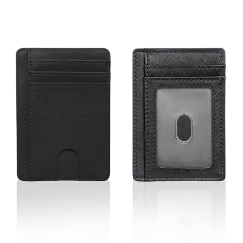 SSKHE Porte Carte Homme, Cuir Artificiel Porte Carte Bancaire,PU Badge Bancaire Fin et Petit Adapte Femmes et HommesBancaire Fin et Petit (Black)