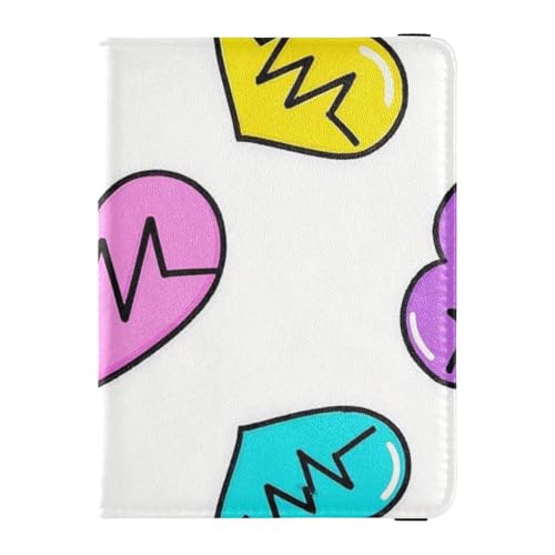 Étui de passeport décoratif en cuir coloré pour documents de voyage, porte-badge, carte de vaccin, portefeuille léger, dessin animé amour électrocardiogramme coloré, 1 size
