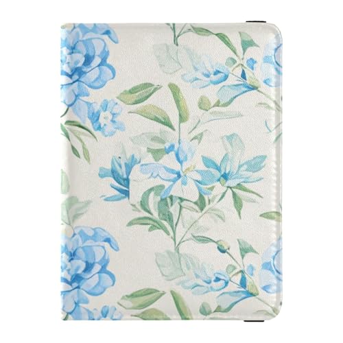 Porte-passeport décoratif en cuir avec fleurs bleues fraîches en été pour voyage, porte-carte de vaccin, porte-badge, carte de vaccin, portefeuille léger, Fleurs bleues fraîches en été, 1 size