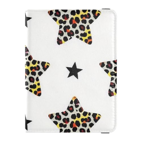 Porte-passeport en cuir blanc avec imprimé léopard et étoile pour voyage, famille, voyage, portefeuille, porte-badge, carte d'identité, vaccin, portefeuille pour femme léger, Étoile blanche à imprimé