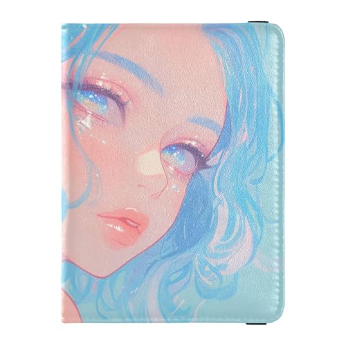Étui portefeuille en cuir pour passeport personnalisable avec motif animé bleu scintillant pour documents de voyage, porte-badge, carte de vaccin, portefeuille léger, Fille anime bleu scintillant, 1