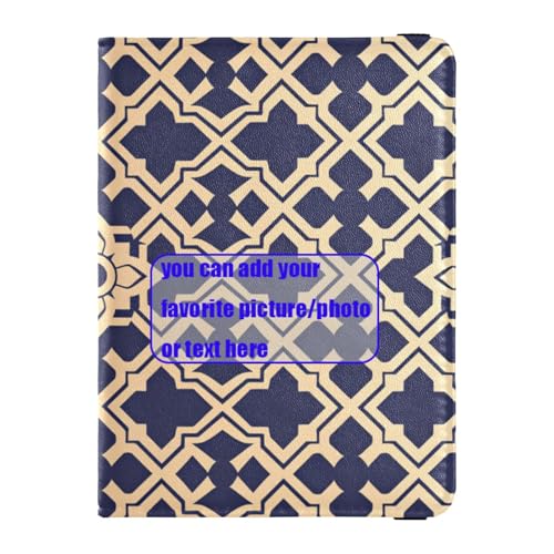 Porte-passeport personnalisable en cuir bleu et blanc pour documents de voyage, porte-badge, carte de vaccin, portefeuille léger, bleu/blanc, 1 size