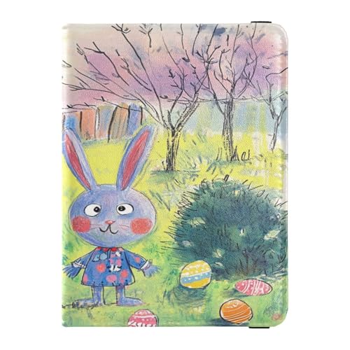 Étui de passeport en cuir imperméable pour homme et femme, badge de famille, porte-badge, carte de vaccin, portefeuille essentiel de voyage, lapin de Pâques cachant les œufs, Lapin de Pâques cachant