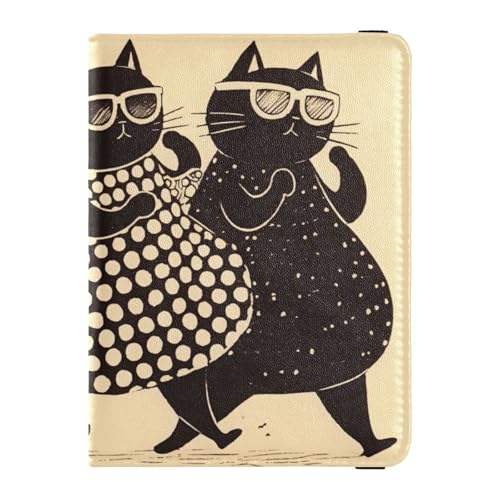 Porte-passeport décoratif en cuir noir marron avec motifs de chats mignons pour passeport de voyage, organisateur de documents de voyage, porte-badge, carte de vaccin, portefeuille léger, chats