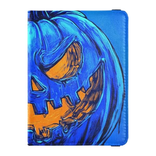 Étui pour passeport et carte de vaccin en cuir bleu pour Halloween, documents de voyage, porte-cartes, badge, carte de vaccin, portefeuille étanche, Citrouille maléfique d'Halloween bleue, 1 size