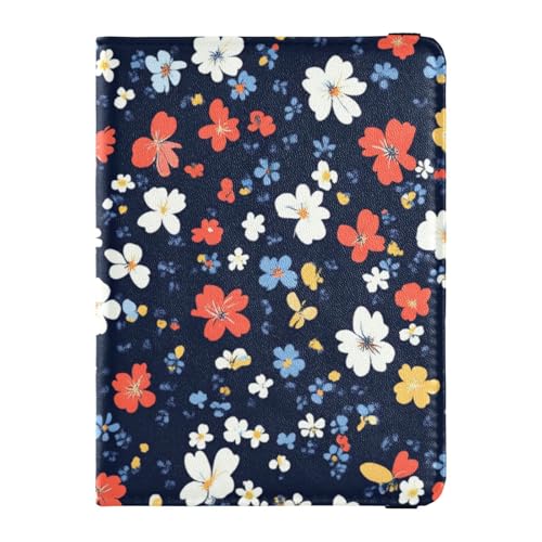 Portefeuille de voyage décoratif en cuir avec plusieurs petites fleurs et papillons de couleur rouge et bleu_4 pour femme, porte-passeport, organisateur de documents de voyage, porte-badge, carte de