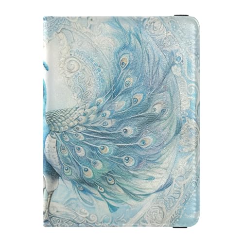 Porte-passeport en cuir avec motif mandala et paon bleu doré pour voyage pour voyage, portefeuille, porte-badge, carte d'identité, vaccin, portefeuille léger pour homme, mandala paon motif mandala