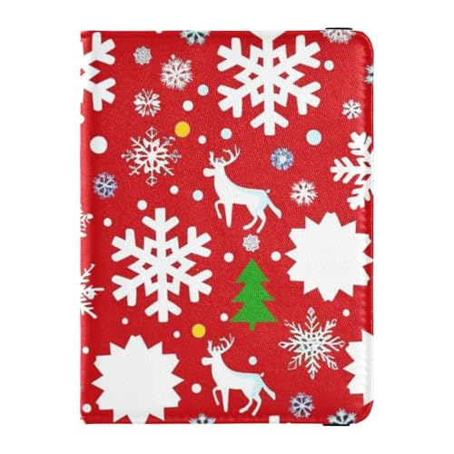 Porte-passeport de Noël en cuir rouge avec flocons de neige, cerf, porte-passeport, badge, carte de vaccin, portefeuille ultra fin, Noël flocon de neige cerf rouge, 1 size