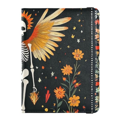 Porte-passeport décoratif en cuir bohème avec motif de squelette et fleur gothique pour passeport, documents de voyage, porte-badge, carte de vaccin, portefeuille léger, boho squelette fleur gothique,