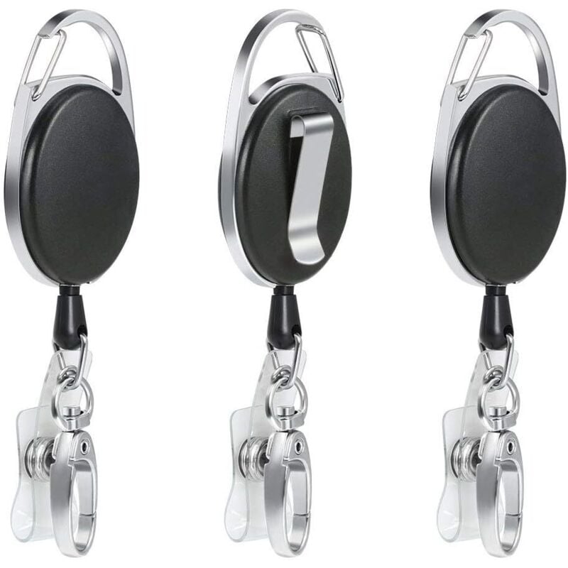 Bobine de badge, 3 clips de bobine porte-badge rétractable avec bobine de ceinture de clé pour porte-clés porte-badge de carte d'identité