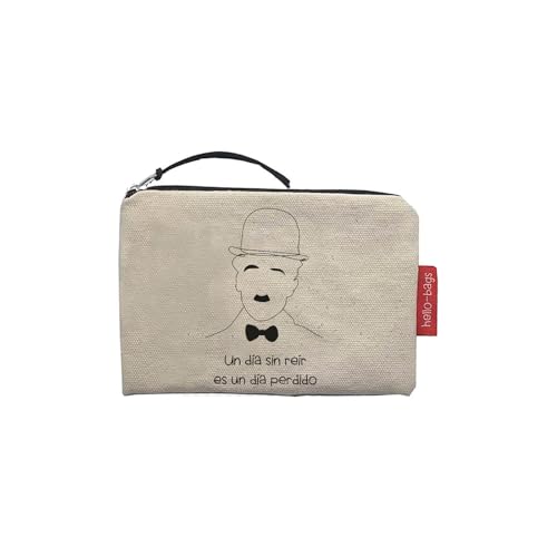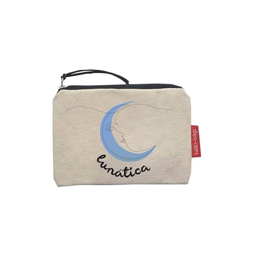 Hello-Bags. Porte-Monnaie/Porte-Carte. Extérieur : Coton 100%. avec Fermeture éclair et Doublure intérieure. Inclue Une enveloppe Kraft de Cadeau. « LUNÁTICA ». Écru/Noir. Mesures :14x10 cm