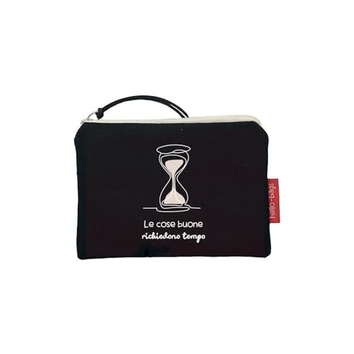 hello-bags. Porte-Monnaie/Porte-Carte. Extérieur : Coton 100%. avec Fermeture éclair et Doublure intérieure. Inclue Une enveloppe Kraft de Cadeau. « LECOSEBUONE ». Écru/Noir. Mesures :14x10 cm