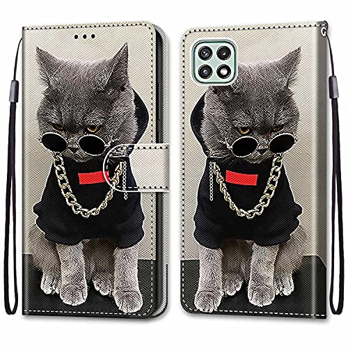 KimsCase Coque pour Samsung Galaxy A22 5G Clapet a Rabat Porte Carte Magnetique Portefeuille Flip Cuir Housse Étui Case Motif Drôle Antichoc Silikon Bumper PU Kickstand Cover
