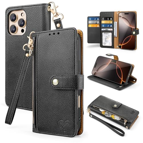 GlasFlength Coque pour iPhone 16 Pro Max mit RFID Blocage, Etui à Rabat en Cuir PU avec Porte Carte Flip Case Magnétique Antichoc 6,9 Pouces Housse de Protection avec Fonction Support (Noir)