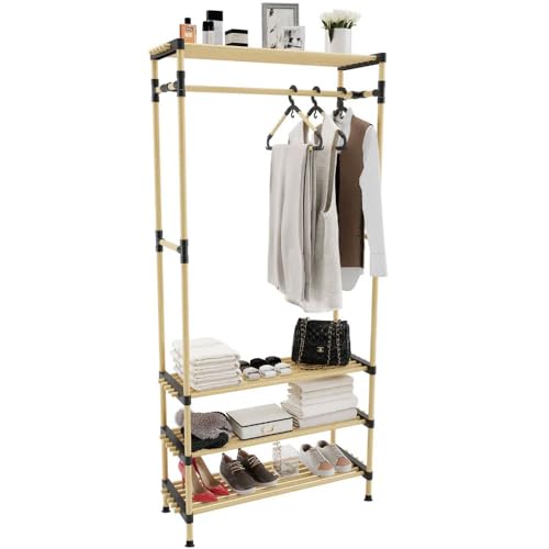 AKTIVE Max Home Porte-Chaussures entrée et Porte-Vêtements, 5 Crochets et 3 Étagères, 60X40X175 cm, Style Industriel, Pieds Réglables, Couloir, etagères, Porte-Chaussures (18432)