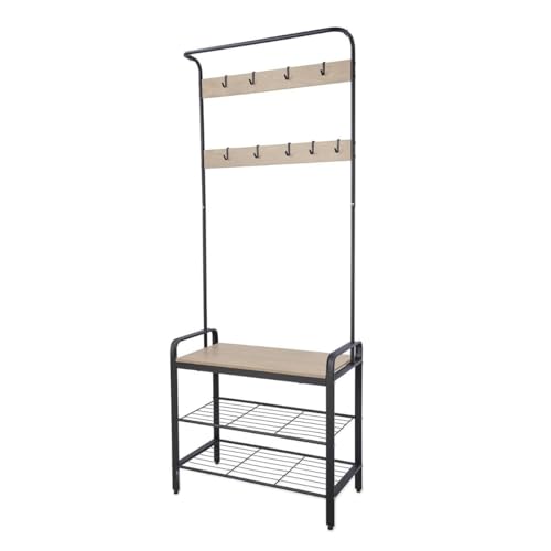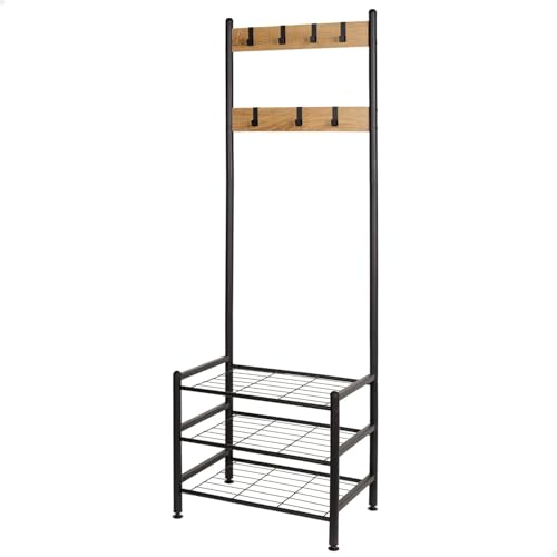 AKTIVE Max Home Porte-Chaussures et Porte-Manteaux, 7 Crochets Coulissants et 3 Étagères de Rangement, 60X40X175 cm, Industriel, Pieds Niveleurs, Couloir, Porte-Manteaux Mural (18428)