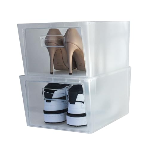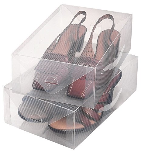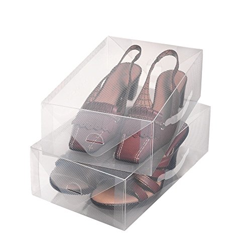 BAKAJI Lot de 12 boîtes à chaussures empilables avec couvercles, assemblage facile, porte-chaussures de gain de place transparentes, boîtes de rangement de rangement, (lot de 12 pièces, 33,5 x 23 x