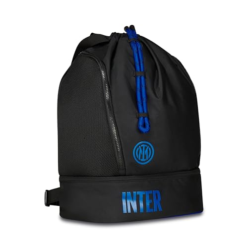 Inter Sac à dos de sport pour garçons et enfants, noir bleu, avec fond rigide porte-chaussures, bretelles réglables, sport et loisirs, Noir, Taglia unica, Moderne
